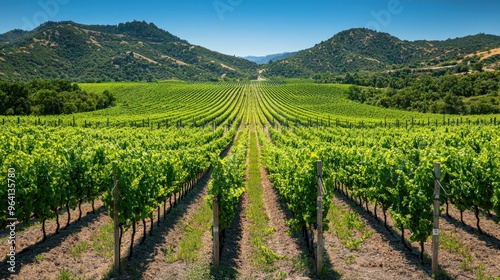 Serene Vineyard Landscape with Lush Grapevines under Clear Sky