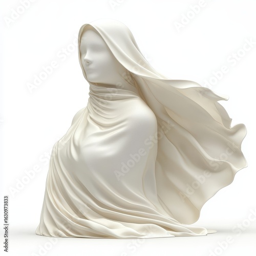 sculpture, white, fabric, draped, minimalist, art, elegant, serene, flowing, smooth, texture, contemporary, statue, abstract, form, three-dimensional, object, studio, shot, off-white, background, design, modern, decorative, artwork, cream, soft, light, shadow, three-dimensional, model, render, digital, artistic, aesthetic, still, life, shape, composition, visual, fine, clothes, drapery