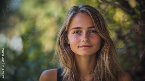 woman, nature, outdoors, enjoyment, portrait, youthful, beauty, natural, peaceful, smile, calm, greenery, femininity, restful, casual attire, depth of field, bokeh, tree, sunlight, summer, healthy, lifestyle, contemplative, calmness, authentic, blissful, relaxed, real, contentment, radiant, glowing, harmony, ecosystem, environment, leisure, serenity, individual, young adult, fresh, wellness, joyful, genuine, vibrant, unisex, sustainable, environmentally friendly