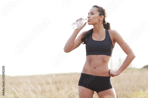 anticipation, athlete, beauty, bottle, brunette, color image, copy space, countryside, day, drinking, environment, exercise, field, fitness, food and drink, front view, grass, healthy living, holding, horizontal, hydratation, isolation, landscape, lifestyle, long hair, nature, one person, outdoors, people, photo, physical fitness, plastic, profile, refreshing, remote, routine, rural scene, serious, activewear, standing, sunny, thirsty, waist up, water, woman, young adult, 20s, adult, apparel, brown hair, clothes, clothing, colours, colours, container, daylight, daytime, drinker, exercising, expectation, female, food, gal, garment, hair, health, hispanic, human, human being, lady, latin america, latino, long, mixed race, natural, negative space, 1, outside, person, plant, rejuvenating, rural, seclusion, seriousness, half face, sideview, sipping, solemn, sombre, sport, sunlight, sunshine, 20s, 20, vegetation, white space, woman