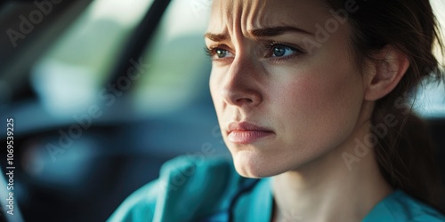 nurse, professional, uniform, worry, career, health care, concerned, female, medicals, doctor, medicine, hospital, clinical, patient, car, crisis, driving, life, compassion, decision, emergency, urgent, dedication, intense, work