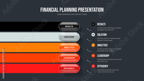 Service Portfolio Five Option Infographic Slide Layout. Sales Solution Presentation Design Vector Illustration. Company Report 5 Element Diagram Frame Template.