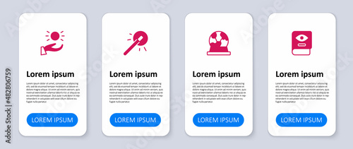Set Ancient magic book, Magic ball, wand and Ball levitating above hand. Business infographic template. Vector
