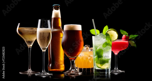 set, collection, cocktail, closeup, champaign, beer, wine, aperitif, drink, alcohol, vibrant, glasses, ice, lemonade, isolated, background, juice, beverage, white, margarita, blue, curacao, lagoon, soda, gin, mojito, whiskey, vodka, refreshment, rum, martini, cosmopolitan, tequila, manhattan, straw, long, party, punch, cherry, negroni, whiskey, hugo, sophisticated, russian, beach