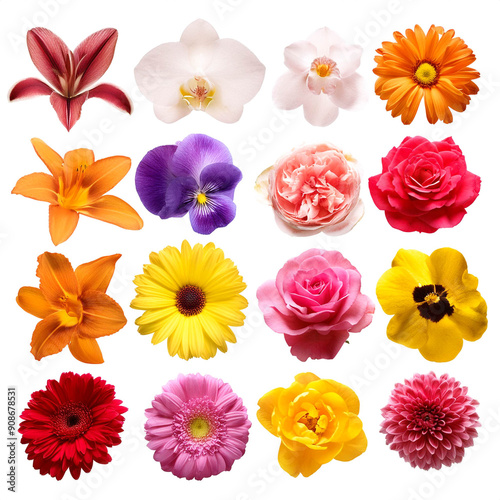 set, flower, isolated, white, background, white, white, release, cut, cut-out, flower, floral, pink, nature, adjusting, spring, bloom, summer, figure, plant, decoration