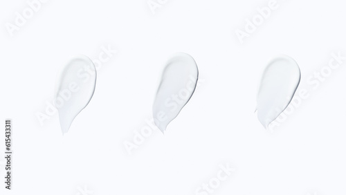 Set Beauty skincare cream texture swipe swatch. White beauty cream smear smudge isolated on white background
