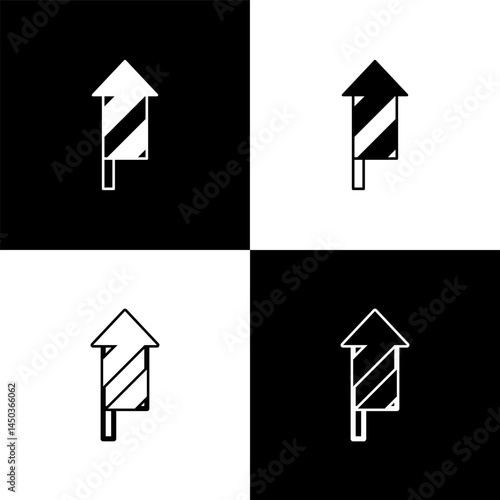 Set Firework rocket icon isolated on black and white background. Concept of fun party. Explosive pyrotechnic symbol. Vector