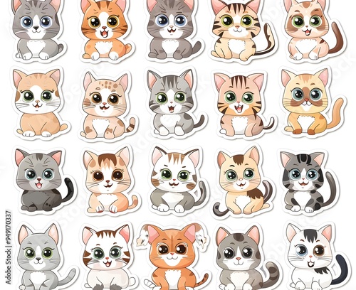 set icon of cute cat character poses scene in pastel colors, white background, vector art illustration