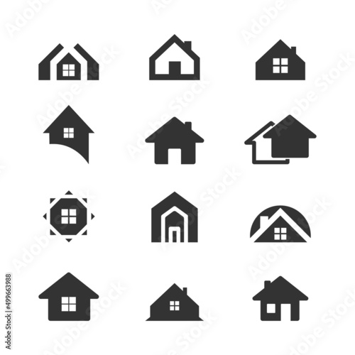 Set of houses. Home symbol collection. Buildings group silhouettes. Real estate pictograms. Property sign. Vector isolated on white.