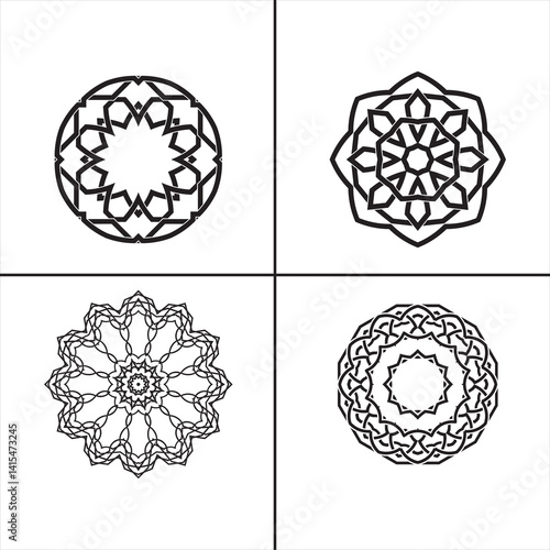Set of 4 outline Mandala with floral ornament pattern, mandala silhouette editable vector isolated on white background