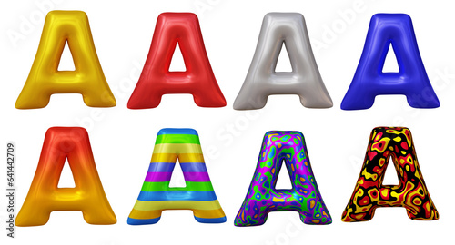 Set of alphabet letter a in 3d rendering isolated on transparent background for education and text concept