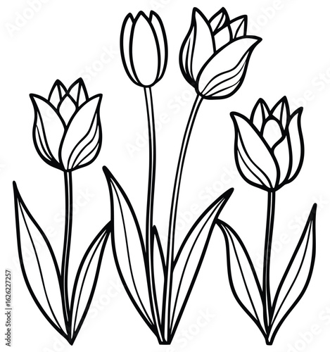 flower, floral, tulip, spring, bouquet, vector, illustration, black, white, plant, nature, bloom, design, art, decoration, garden, leaf, blossom, beauty, stem, elegant, classic, silhouette, vintage, line, detail, pattern, ornamental, seasonal, graphic, monochrome, simple, delicate, fresh, outline, arrangement, natural, organic, decorative, flora, botany, artistic, stylised, minimal, monochromatic, graceful