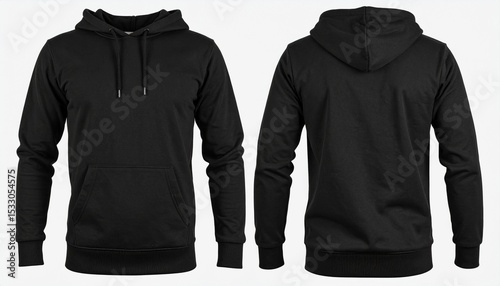 Set of Black front and back view tee hoodie hoody sweatshirt on transparent backgroun