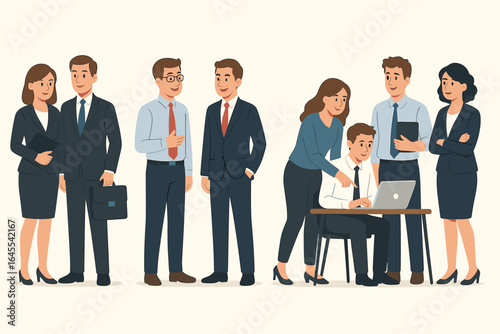 business, people, team, corporate, office, character, professional, illustration, vector, set, collection, teamwork, collaboration, employee, staff, men at work, manager, colleague, man, woman, group, meeting, discussion, working, job, company, success, person, suit, career, entrepreneur, presentation, computer, laptop, modern, flat, design, isolated, businessperson, work, leadership