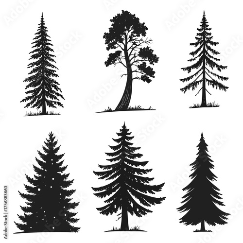 tree, christmas, winter, forest, fir, snow, holiday, vector, nature, illustration, landscape, season, christmas, tree, celebration, green, christmas tree, decoration, spruce, silhouette, design, wood