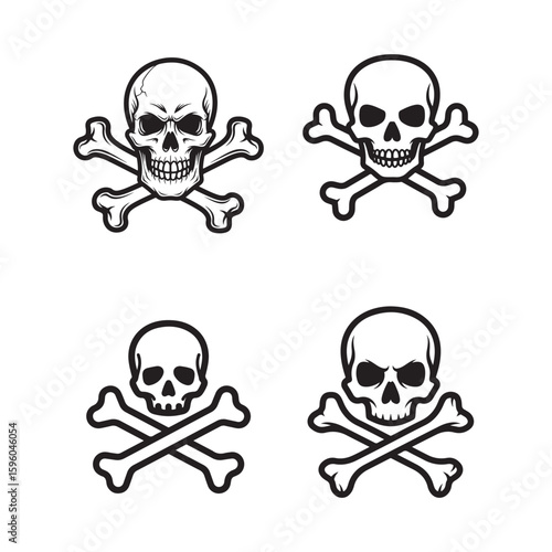 Set of Classic Skull and Crossbones Vector Icons Symbolizing Danger and Poison Warnings