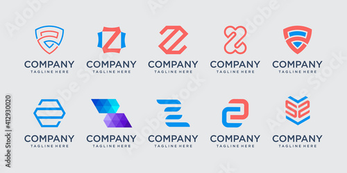 Set of collection initial letter Z logo template. icons for business of fashion, digital, technology.