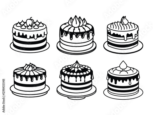 Set of decorated cake illustrations silhouette isolated on white background
