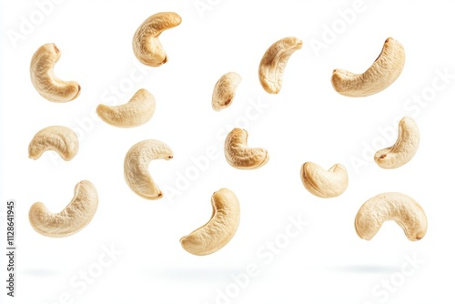 Set of Falling cashew nuts isolated on white background