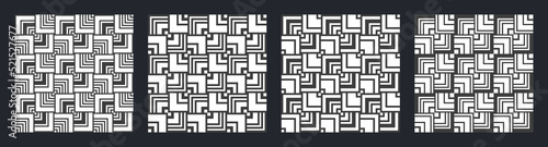 Set of four seamless vector patterns. Abstract geometric trendy vector pattern collection. Modern stylish textures, geometric tiles with striped elements. Black and white vector backgrounds.