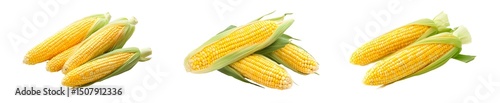 set of Fresh corn cobs arranged in a group. isolated on transparent background