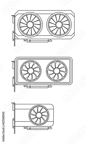 Set of Graphics cards (GPU, video card, display card). Vector outline illustration