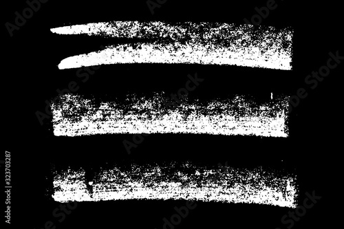 Set of grunge white chalk texture stripe brush on black background