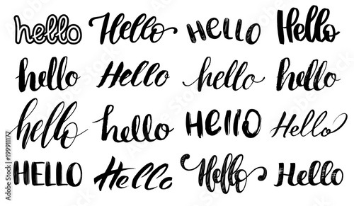 Set of handwritten phrase Hello.Vector calligraphy on white background.