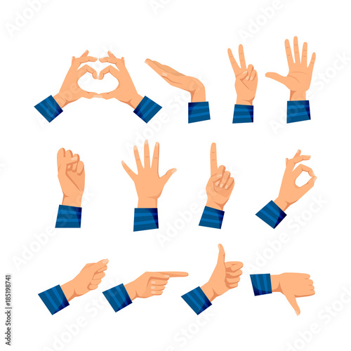 different, anatomy, art, attention, boy, character, class, collection, communication, down, emotion, excellent, expression, finger, fist, 5, flat, gesture, gesticulate, give, good, hand, nubes, human, illustration, isolated, love, man, ok, ok, pointing, press, protest, respect, set, showing, signs, signal, stop, support, up, vector, white