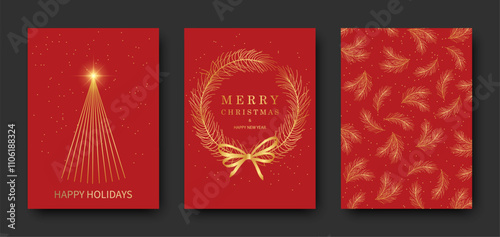 Set of Merry Christmas and Happy New Year greeting cards. Vector illustrations