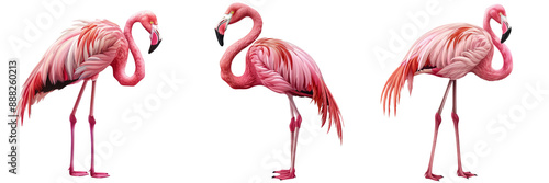 Set of Minimalist flamingo artwork with a focus on clean lines and bold color contrasts isolated on tranparent background