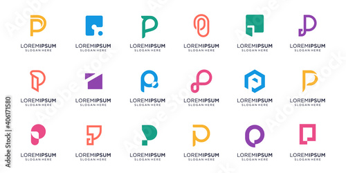 Set of monogram of letter P logo design.icon for business of luxury,inspiration,abstract.Premium Vector