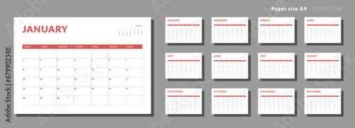 calendar, 2024, template, year, planner, wall, agenda, layout, english, grid, vector, note, month, may, week, jan, table, date, schedule, desk, day, design, diary, organiser, event, business, page, 12, annual, corporate, desktop, monthly, simple, weekly, monday, typography, company, office, quarter, minimal, red, clean, horizontal, almanac, print, isolated