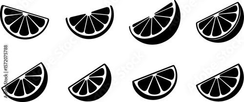 Set of orange fruit slice silhouette black silhouette vector illustration