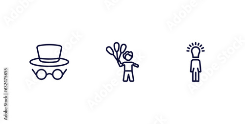 set of people thin line icons. people outline icons included hat and glasses, man child and balloons, man with idea vector.