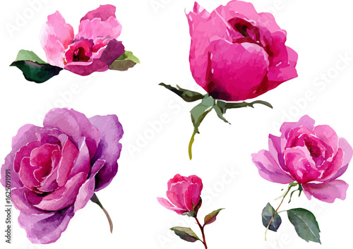 set of pink roses isolated
