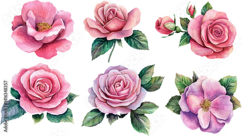 rose, flower, pink, bouquet, rose, love, flower, floral, nature, blossom, valentine, vector, leaf, vintage, wedding, beauty, card, decoration, nubes, watercolor, illustration, beautiful, gift, day