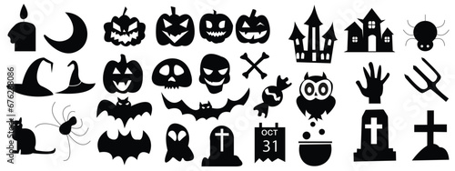 halloween, vector, icon, pumpkin, ghost, bat, silhouette, element, skittish, background, spider, sorcerer, black, symbol, cartoon, cat, horror, set, grave, white, design, cemetery, scarey, decoration, animal, web, skull, hat, signs, tree, isolated, dark, creepy, skeleton, fear, night, evil, holiday, art, cross, illustration, autumn, celebration, mammal, collection, bad, object, october