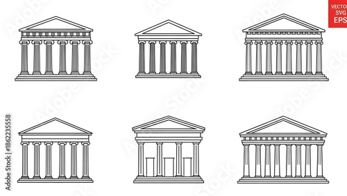 ancient, architecture, building, column, classical, temple, facades, greek, roman, structure, design, outline, drawing, illustration, historical building, history, art, exterior, pediment, entablature, neoclassic, antique, vector, icon, symbol, graphic, element, set, collection