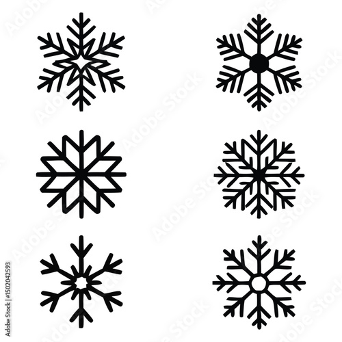 Set of Snowflake Icons – Black Silhouette Vector Collection for Winter, Christmas, and Seasonal Design