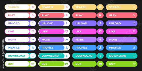 Set of social media modern buttons. Different gradient colors and icons on oval forms with shadows.