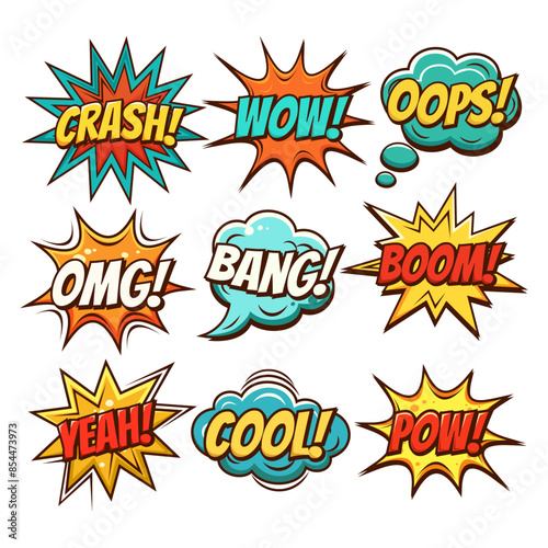 set of speech bubbles. Comic text sound effects. Banner, poster, sticker concept.