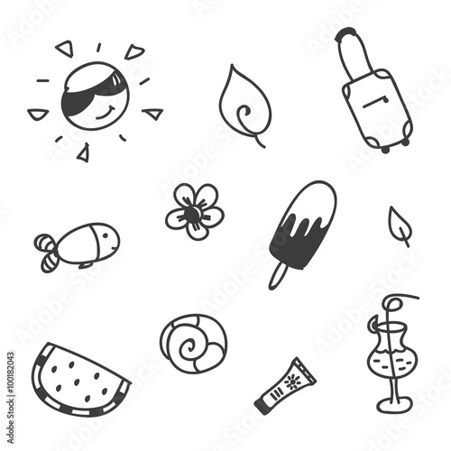 Set of summer doodles isolated on white background.