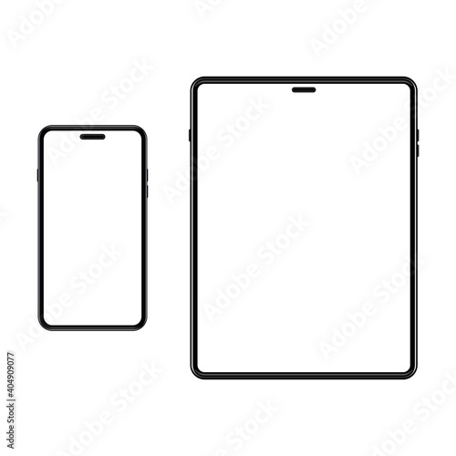 Set of template smartphone and tablet. White screen on portable device. Mockup gadget with empty, blank screen. Vector