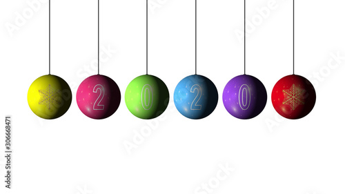 Set of the Christmas and New Year multicolored Balls with a golden snowflake and text 2020. on white background. Merry Christmas and a Happy New Year