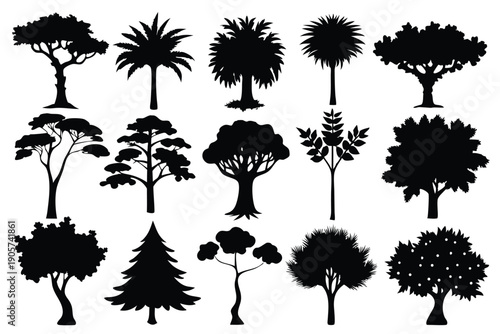 tree, forest, timberland, nature, green, leaf, branch, trunk, bark, root, canopy, foliage, evergreen, deciduous, sapling, shade, oxygen, photosynthesis, ecosystem, biodiversity, habitat, wildlife, timber, wood, plantation, rainforest, mangrove, fruit farm, seasonal, growth, natural, landscape, environment, silhouette, vector, illustration, plant, design, palm