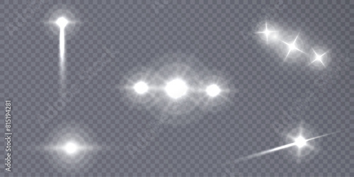 Set of vector effect of a bright flash of a special solar lens on a transparent background. Light blur effect. Vector illustration