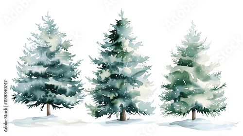 Set of Watercolor Christmas tree, isolated on a white background, Christmas tree painting. Merry Christmas