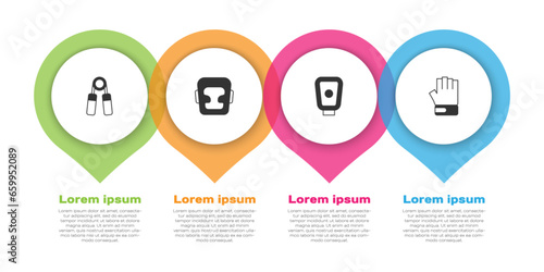 Set Sport expander, Boxing helmet, training paws and MMA glove. Business infographic template. Vector