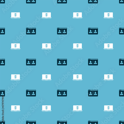 Set Video chat conference and Mute microphone laptop on seamless pattern. Vector